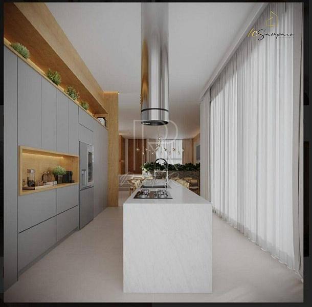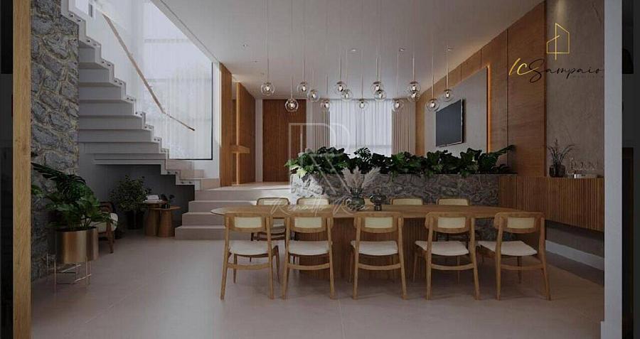 A residência está equipada com um elevador, facilitando o acesso a todas as áreas. O layout inclui uma sala de estar, sala de jantar, sala íntima e uma cozinha integrada, perfeita para quem aprecia a convivência e o convívio social. A lavanderia é ampla, garantindo funcionalidade no dia a dia, enquanto o lavabo decorado adiciona um toque de requinte.